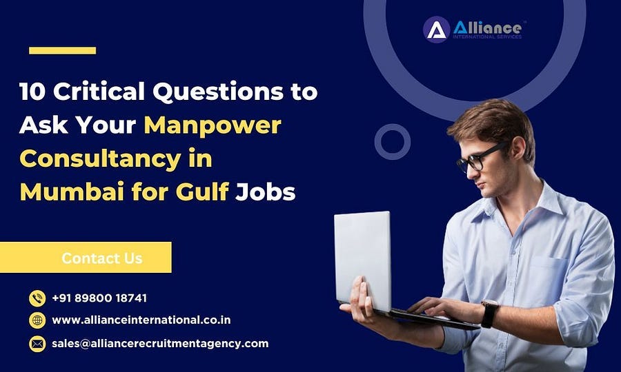 Selecting an appropriate manpower consultancy in Mumbai for Gulf jobs is one of the decisive steps to getting a better job in Gulf countries. Here are the 10 questions you have to ask: These questions will allow you to understand how many years the consultancy has been in operation, the connections the consultancy has, and turnovers, among others, to ascertain whether the consultancy company is devoted to your career objectives. Being one of the most renown manpower consulting firms in Mumbai, Alliance International assists individuals and companies in their quest for Gulf employment with efficient recruitment services and extensive support. Contact us today about how we can help you find a job in the Gulf area.